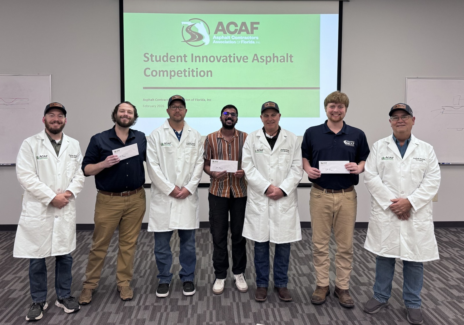 In late February, the Asphalt Contractors Association of Florida (ACAF) joined forces with the AAPT Student Chapter at Auburn University to host a Student Innovative Asphalt Competition at the National Center for Asphalt Technology (NCAT). Originally invited to speak at a Lunch & Learn, ACAF members leveraged their planned NCAT visit to organize an evening event bringing students and industry professionals together for dinner, brainstorming, and fun.